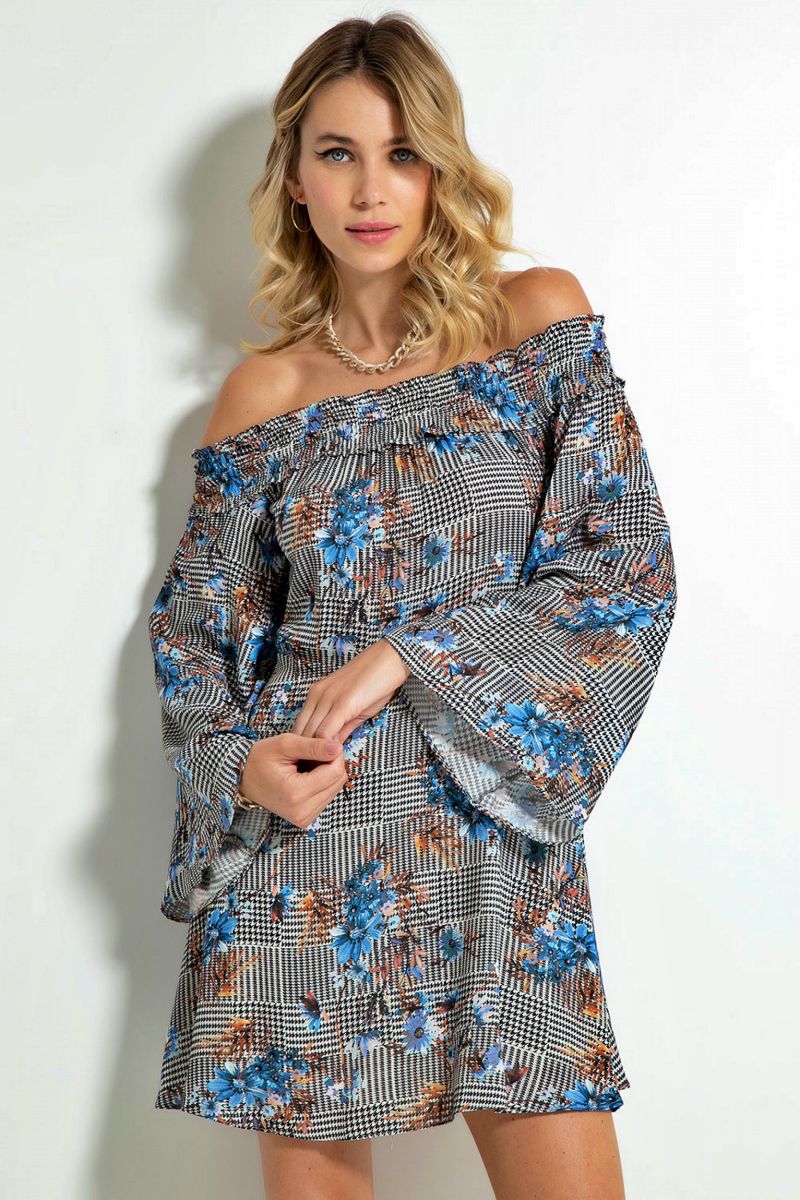 Vestido Curto em Viscose Xadrez Amarilis