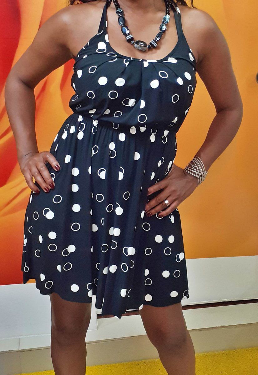 Vestido em 100 % Viscose Estampado Preto com Alcinhas - Amicia Fashion
